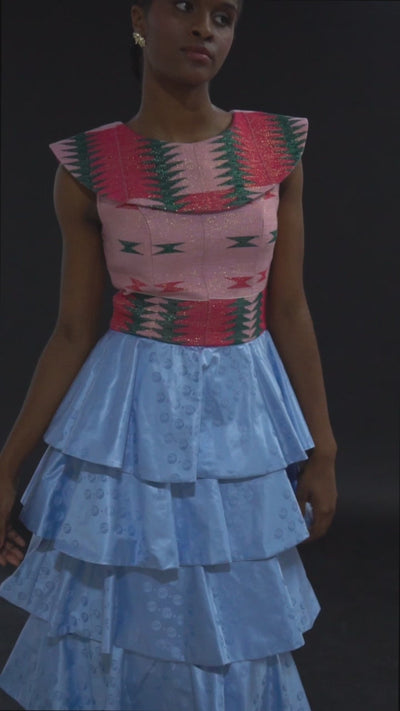 The Amaria Dress by NAAYÉ is a seamless fusion of classic elegance and distinctive craftsmanship. This exquisite piece features a finely tailored upper adorned with bold, hand-woven patterns, capturing a blend of tradition and modernity. Inspired by the dramatic flair of traditional Flamenco attire, the skirt of the Amaria Dress is composed of various layers, each adding a flourish of dramatic movement and an ultra-feminine touch to the ensemble. Perfect for both daytime and evening events, the Amaria Dress is designed to enhance your presence with a sense of empowerment, originality, and undeniable glamour. With each detail meticulously crafted, this dress is a celebration of femininity, designed to make every moment memorable.